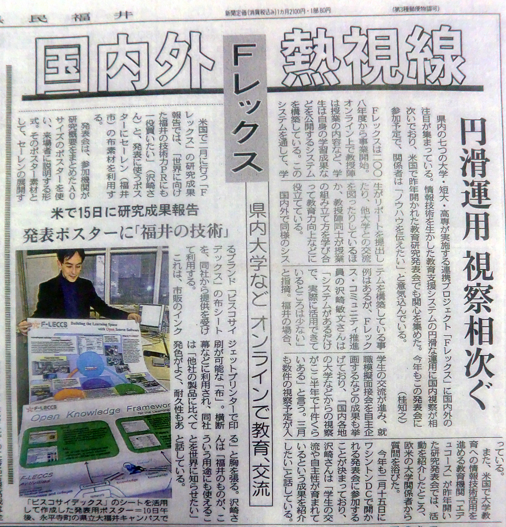 「Fレックス」とは、福井県内の各大学をひとつの仮想的な大学として機能させることで、福井県全体の高等教育のレベルアップを目指していく事業です。2回目となる発表でしたが、アメリカでも高い関心を集めました。